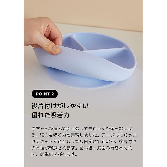 【ひっくり返らない】超強力吸盤がテーブルにしっかりと固定され、掴んで揺らしても食べ物がこぼれにくいのでお食事タイムがより楽になります。