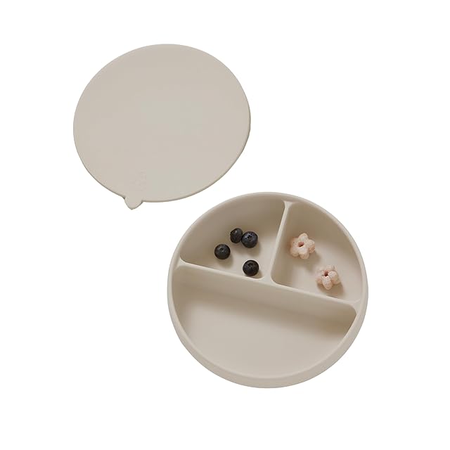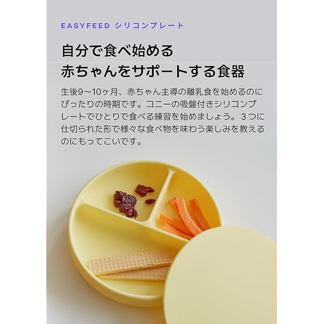 【Konny】コニーEasyFeedシリコンプレートひっくり返らない プラチナシリコン食器 吸盤付き お食事 BLW 赤ちゃん主導の離乳食 ベビー食器 (Cream、クリーム)