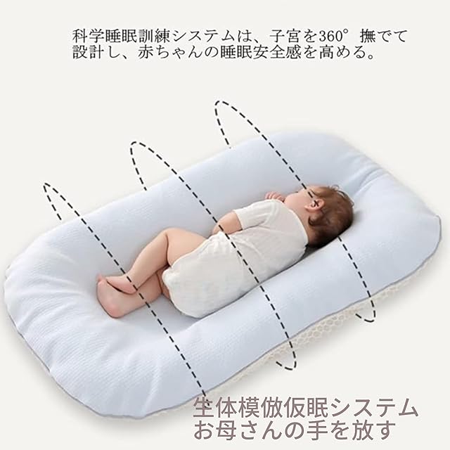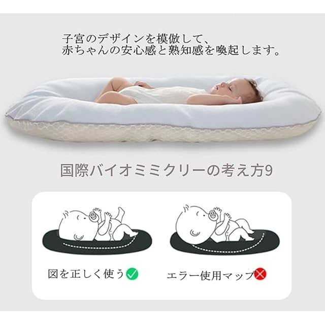 【バイオミミクリー設計】子宮の形状を模倣し、睡眠の質を向上させます。 生まれたばかりの赤ちゃんに安心感を与える子宮をイメージして作られています。 包み込むような形状が赤ちゃんに安全な環境を提供し、睡眠の質を高めます。