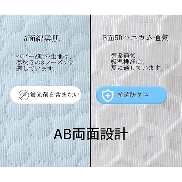 【きそはいち】本製品は良質な綿を選び、AB両面設計を持っています。A麺は綿密で肌に優しく、春秋冬の3シーズンに適しています。B面5 Dハニカムは通気し、汗を吸って排湿する。蛍光剤は含まれていません。両麺は赤ちゃんの四季に付き添って、赤ちゃんの偏頭を防止します。内胆はオーストリアの蘭精天糸5 D網布を採用し、多次元立体構造、通気抑菌、支持性が強い。