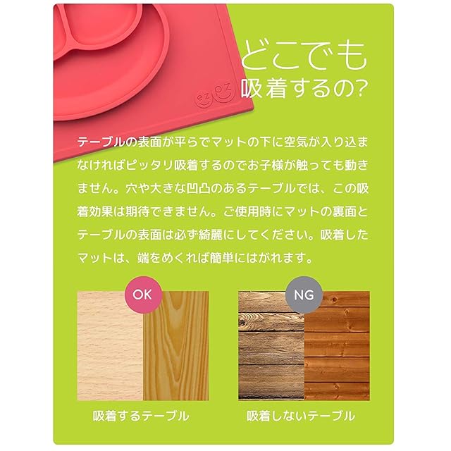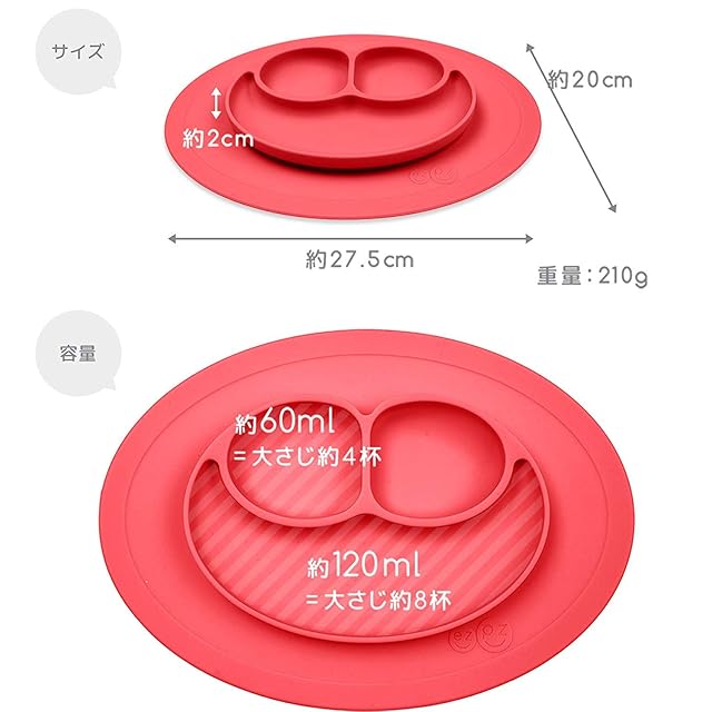 ✅【置くだけでひっくり返らない】テーブルにピッタリ吸着するから、お皿をひっくり返したり食べ物を床に落とす心配がなくなり、ママもゆっくり食事ができるように!お皿が動かないから、手づかみ食べやスプーン・フォークの練習にも最適◎【1~2歳の赤ちゃんにピッタリなサイズ】容量=約240gで、ミニマットを使用する1~2歳の赤ちゃんに合わせたサイズ。丁度いい量を盛り付けすることができ、食べすぎを防ぐことができます。【お手入れ楽々】食洗機・乾燥機対応だから、食べこぼしをしっかりキャッチしたあと、まるごと洗えて衛生的に使えます。【持ち運びに便利なコンパクトサイズ】カバンに入る小さめサイズなので、外食や旅行でも大活躍◎
