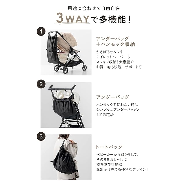 [plunmoln] ベビーカーアンダーバッグ 【5秒でトートバッグに】 25L 大容量 収納 倒れない 撥水 3way