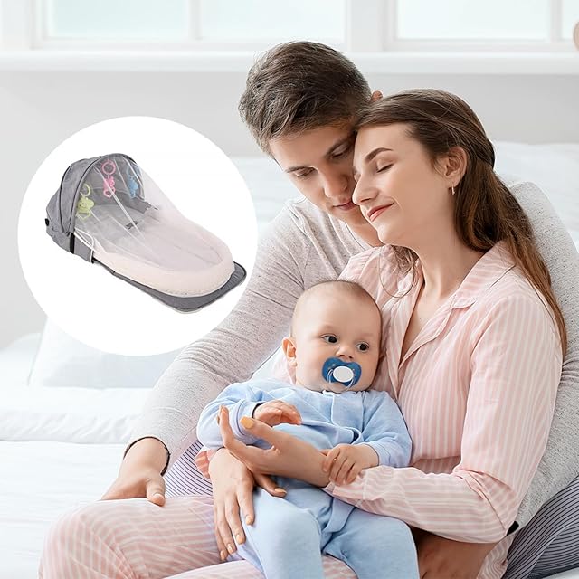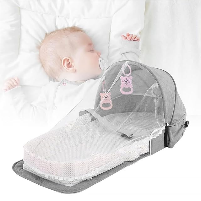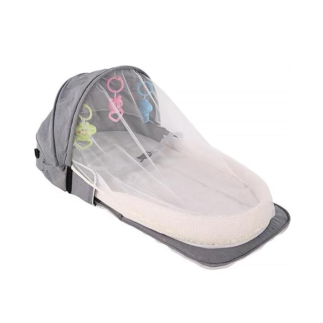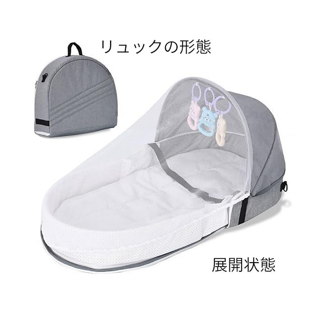 ベビーベッド 蚊よけ 隔離ベッド ベビー折りたたみベッドポータブル多機能トラベルバックパックベッドトラベルベビーベッド (グレー, ワンショルダー)