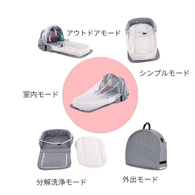 【防蚊設計】:特別な防蚊ネットが付いており、赤ちゃんを蚊や虫から守ります。通気性が良く、赤ちゃんの快適な睡眠環境を提供します。