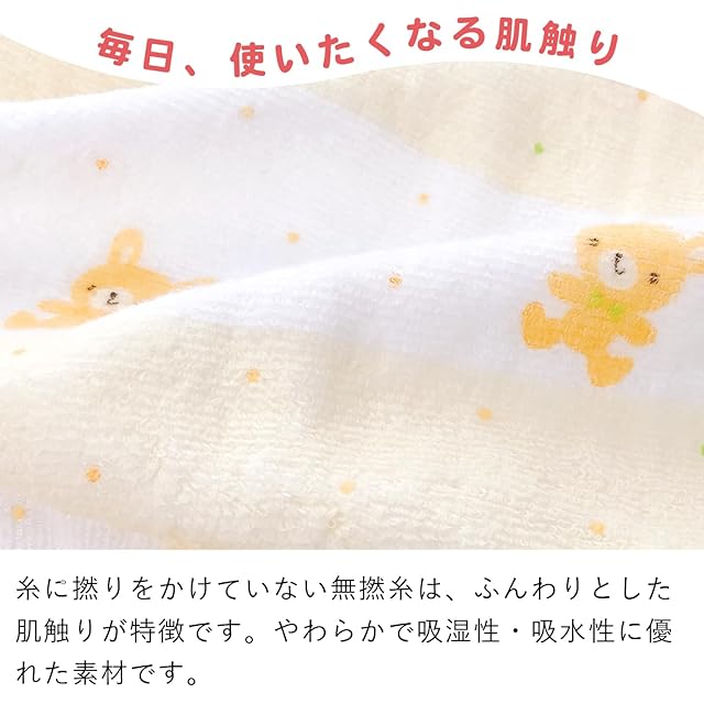 【無撚糸タオル】糸に撚りをかけていない無撚糸は、柔らかく吸湿性・吸水性に優れた素材です。ふわっとやわらかな肌触りが特徴です。