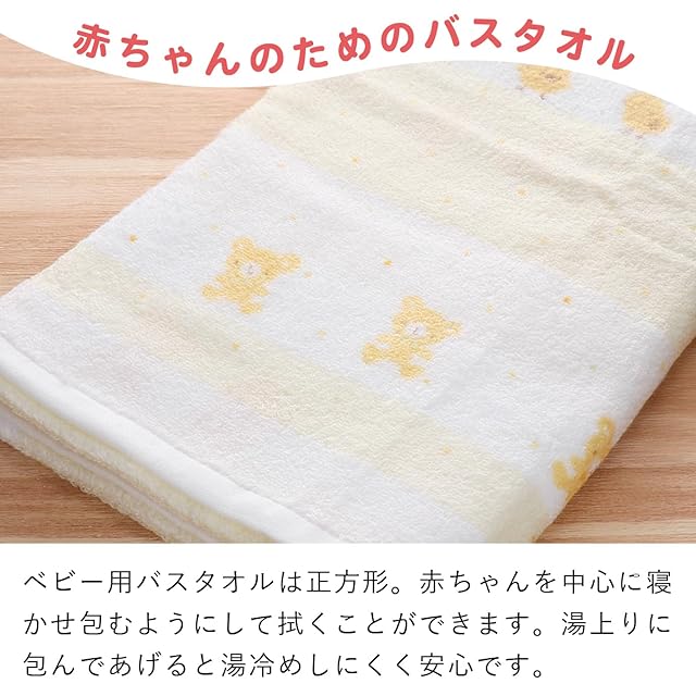 【赤ちゃんを包みやすい正方形】ベビー用バスタオルは正方形になっているのがポイント!バスタオルの角を上にして広げ、赤ちゃんを中心に寝かせ包むようにして拭くことができます。