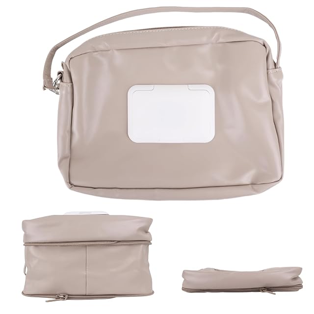 [MRG] [名入れ可] お尻拭きポーチ 蓋付き 持ち運び オムツ入れ おしりふき おむつポーチ 軽量 コンパクト オムツポーチ 大容量 御襁褓ポーチ (01.名入れなし, グレージュ)