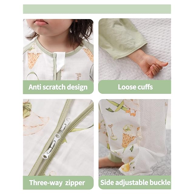 【丈調節可能】両側に調節可能なボタンが付き、お子様の身長に合わせてスリーパーの高さを調節することができて、服が合わない心配がありません。