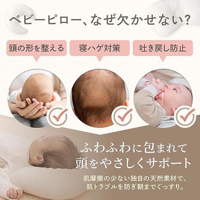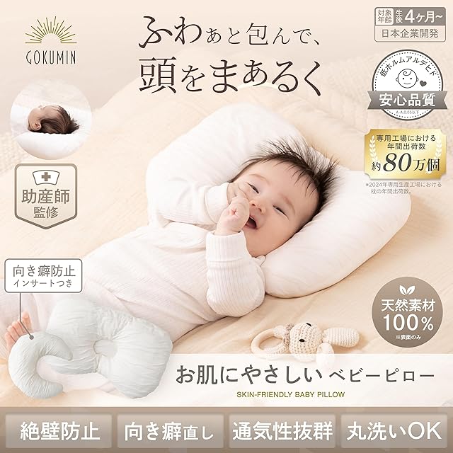 GOKUMIN BABY 【助産師監修】ベビー枕 ドーナツ枕 赤ちゃん 枕 乳児 【デリケートな肌にぴったりの天然素材】 絶壁防止 向き癖 丸洗い可能 横幅40cm キッズ枕 速乾 出産祝い ギフト プレゼント 日本企業 G-HYBP