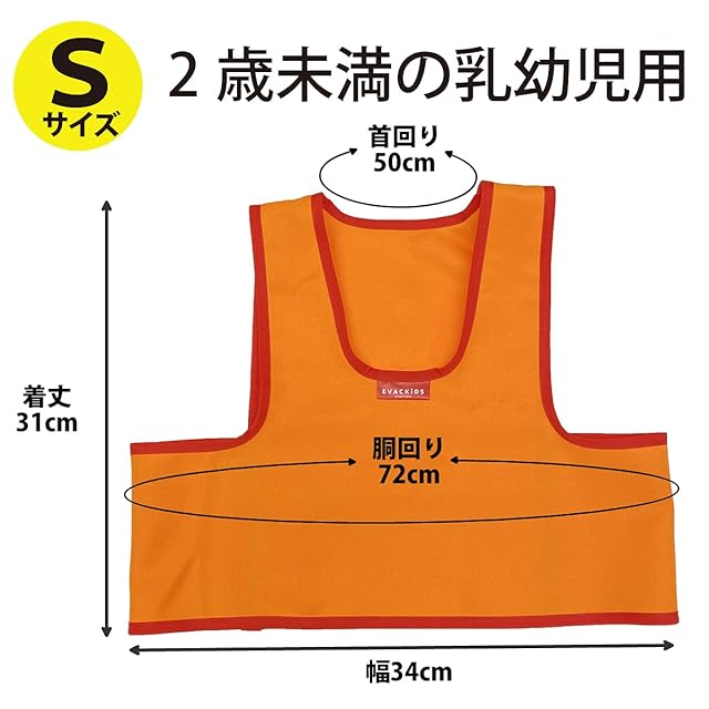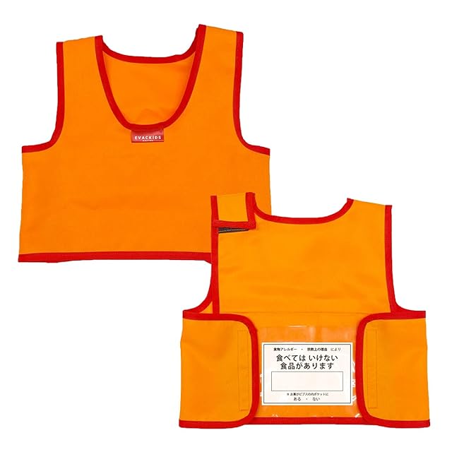 EVACKiDS 非常時用アレルギービブス日本製 アレルゲンを記入できるカード付 オレンジ 2歳未満の乳児用Sサイズ 日本エイテックス