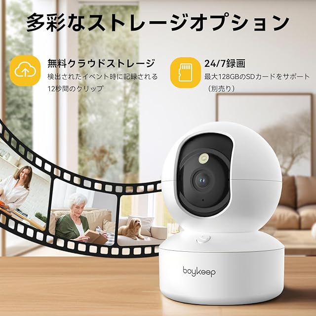 【カラー暗視・5GHz/2.4GHz Wi-Fi両対応】 ペットカメラ 見守りカメラ 防犯カメラ 室内 2K BoyKeep ワンタッチ双方向通話 360°パンチルト モーション検知 自動追跡 監視カメラ ペットモニター 家庭用 ホームカメラ クラウド/SDカードストレジ 一年保証