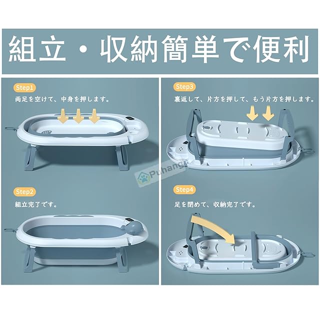 ★【多用途使用】ベビーバスだけでなく、ペットのお風呂用、洗濯物の浸け置き用、日常衣類洗い、お子様のおもちゃ入れや水遊び用、掃除、収納、脱衣カゴ、キャンプ、ピクニック、釣り、大きな野菜洗い、断水前に水の蓄え用、洗い桶、災害用品としても使えます。旅行の時、様々な品物収納とても便利です。