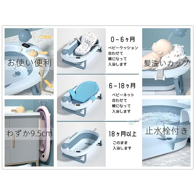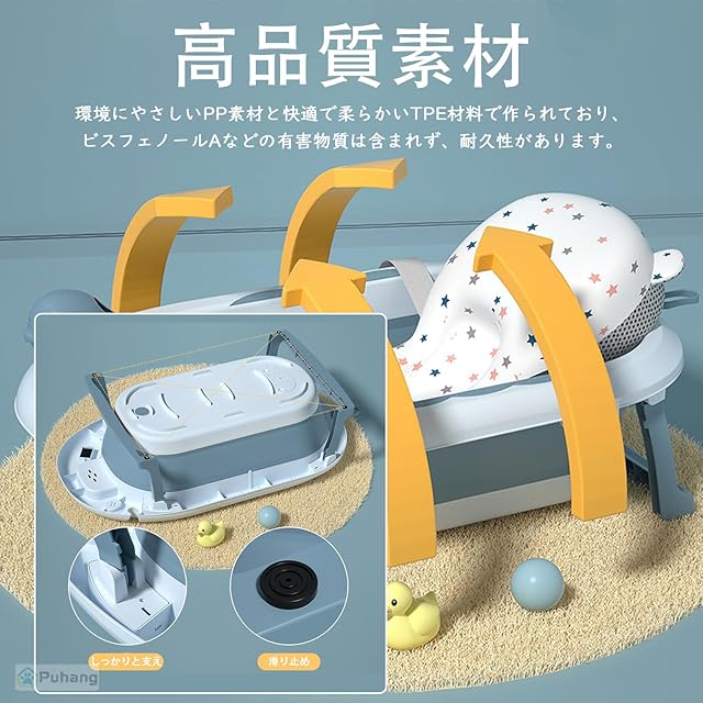 ★【サイズと適用対象】展開時:長さ81.5CM、幅49CM、高さ21.5CM。内径:長さ65CM、幅38CM。折り畳まれた厚さはわずか9.5cmです、便利な収納、スペースをとらないです。0~6歳の子どもの間に非常に適しています。滑り止め設計なので、赤ちゃんに安心ご利用いただけます。またはスポンジバスネット外して6歳までのお子様にもご利用いただけます。