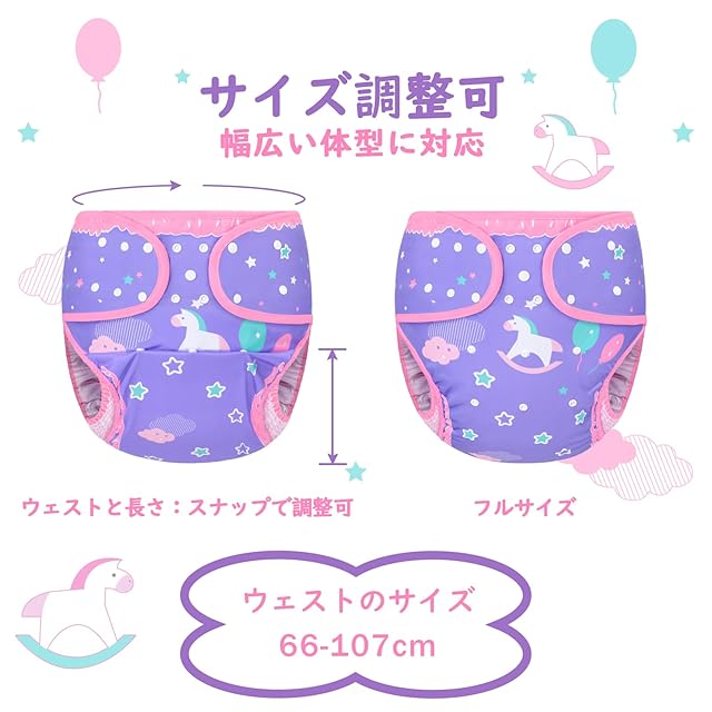 [LittleForBig] 大人用おむつカバー 可愛い絵柄【リトルファンタジー】 調節可能なウエストと長さ スナップ付 漏れ防止 通気性 洗濯可