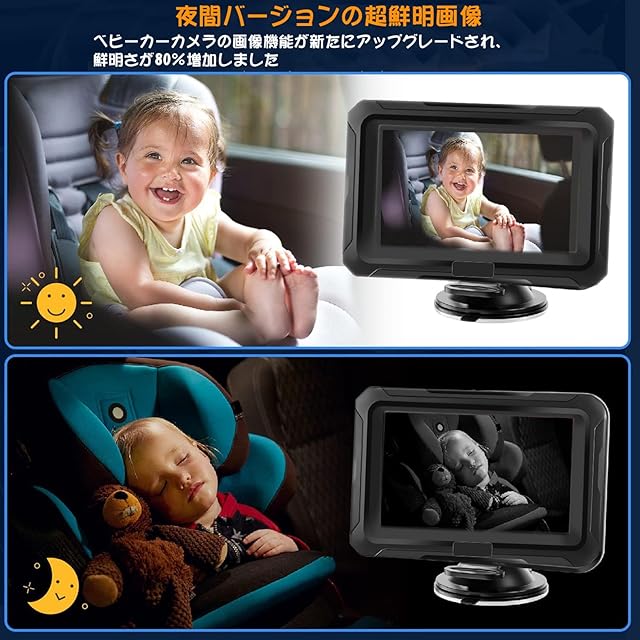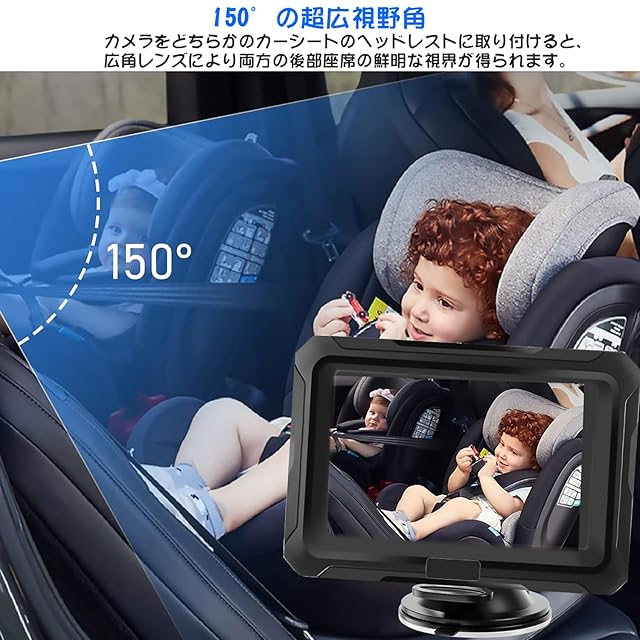 Stynxro 1080P 車用ベビーモニター 4.3インチ HD ベビーミラー 車 赤外線 暗視 150°広視野角 360°回転可能 監視 簡単設置 後ろ向き幼児用シートに最適