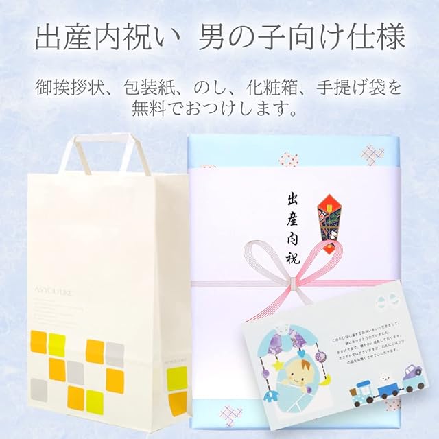 のし・包装加工済み、出産内祝いメッセージカード(男の子用)・お渡し用手提げ袋付き