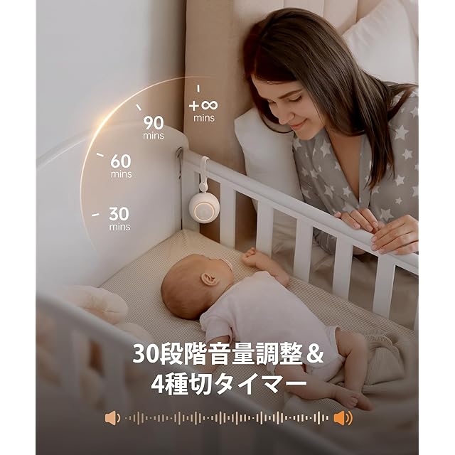 【19種類の癒やしサウンドを収録】睡眠にリラックスできる小鳥の囀り、虫の鳴き声、雨の音、夏の雨と雷、川のせせらぎ、海の波打ちなど6種類の自然音)が用意し、赤ちゃんの向け音(母の胎内音、「すーすー」の音、6曲子守唄)が収録され、睡眠改善・集中力アップに効果のあるホワイトノイズとファン音も5曲備えています。赤ちゃんの寝かしつけおもちゃとして大活躍してくれるだけでなく、自宅でも各種な雰囲気を創造でき、睡眠改善・集中力アップ・騒音対策・耳鳴り緩和になることに役に立ちます。
