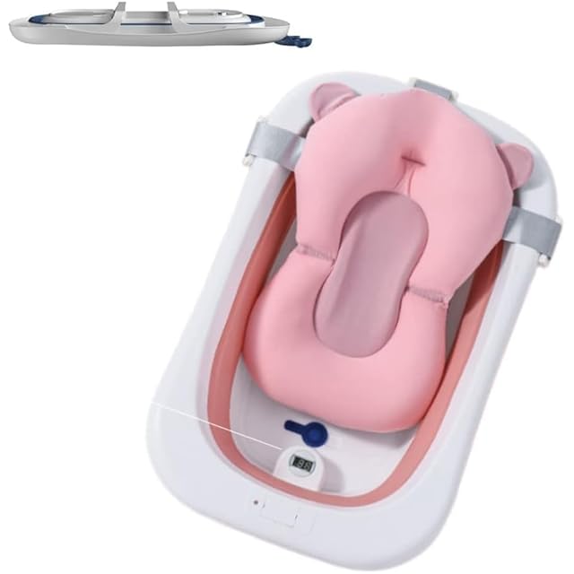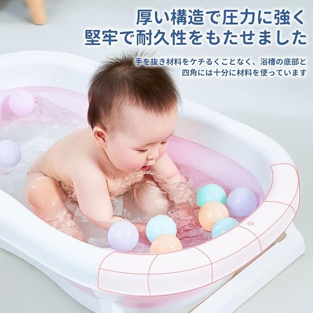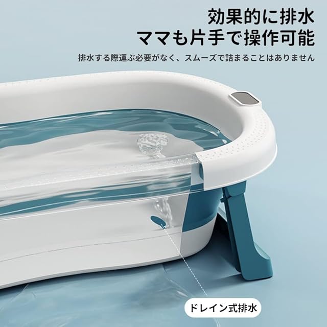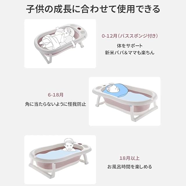 ベビーバス 折りたたみ 新生児~5歳 赤ちゃん お風呂 サポートスポンジ付き 温度計付き 沐浴用バスタブ ベビー 収納容易 滑り止め設計