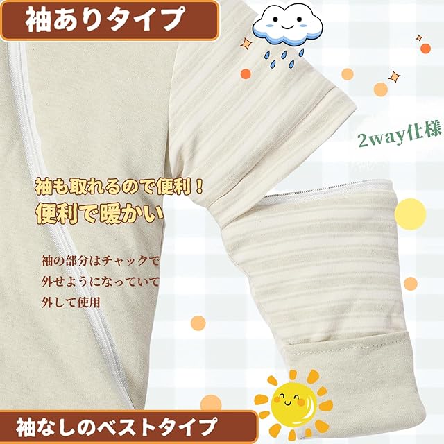 厚め ・袖あり ・袖取り外し可能:袖が取り外し可能で、秋冬に長袖タイプ、春にベストタイプ!