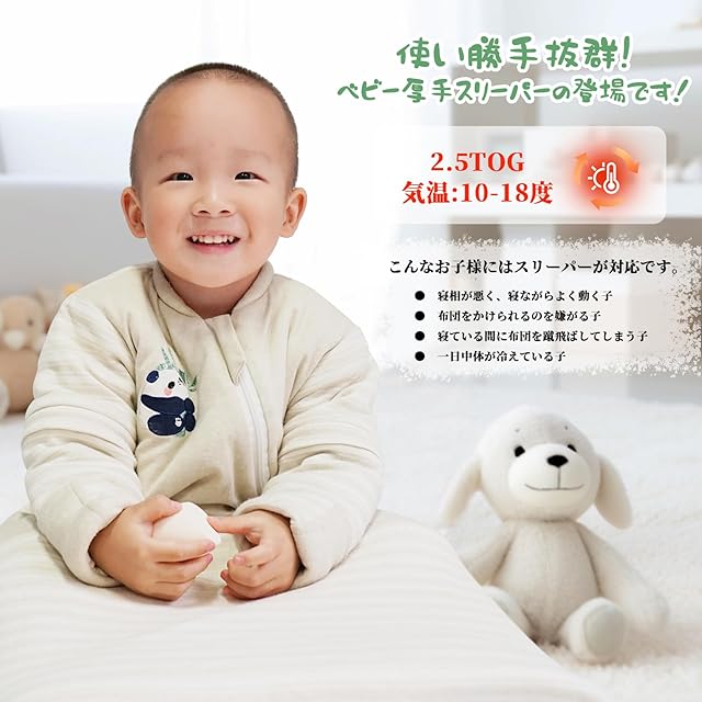 [HOOMCOOM] スリーパー 冬 ベビースリーパー オーガニックコットン100% 柔らかく 袖あり 袖外せる 2way仕様 可愛い 6ヶ月から24ヶ月