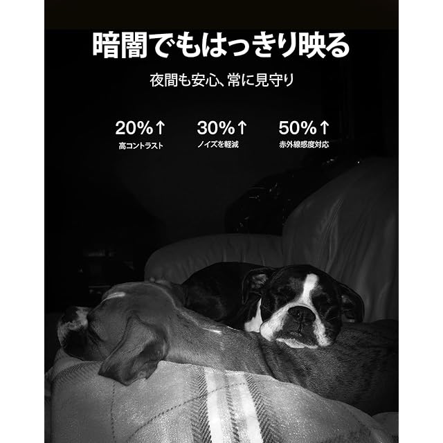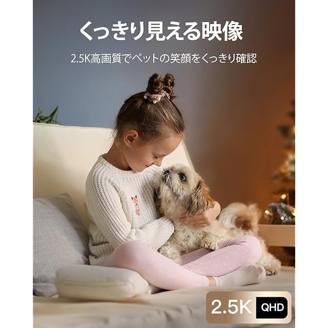 細部まで鮮明に:VIMTAGの見守りカメラ ペットは、2.5Kの高解像度と400万画素を誇り、ペットの動きや部屋の様子を鮮明に捉えます。130°の広い視野角と、355度の水平回転、115度の垂直回転が可能で、家全体を多角度から確認できます。夜間になると防犯カメラ 室内としても活躍し、自動的に暗視モードに切り替わります。(オートモードは手動でオンにする必要があります。)赤外線光源により、昼夜を問わず部屋の隅々まで見守ります