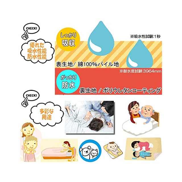【安心の100×210cm】 一般的な防水シーツ長さは200-205cmですが、イクズスの防水シーツは210cm。 5cm又は10cmの違いが余裕を持ってお布団全体をしっかりカバーします。