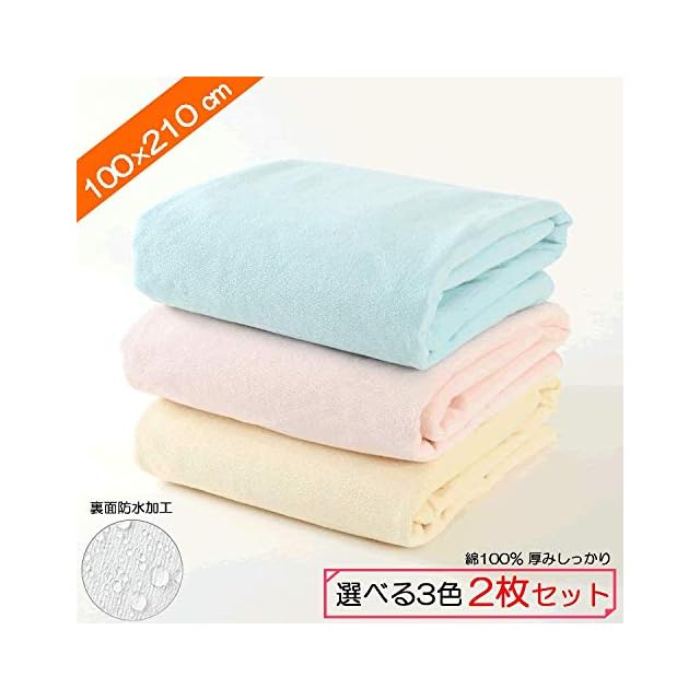 イクズス 綿100% 防水 おねしょシーツ シングル 100x210cm 2枚組 (サックス-ピンク)防水シーツ 厚手 ベビー 介護