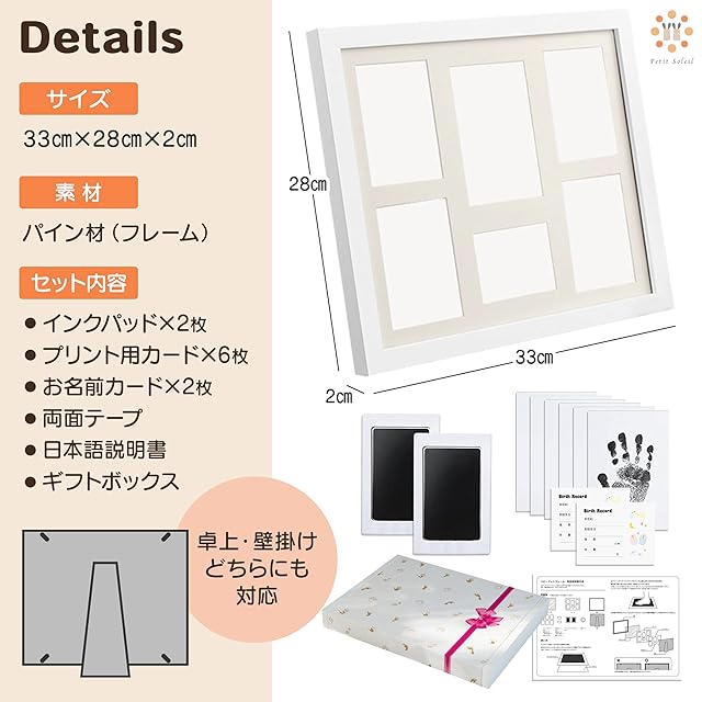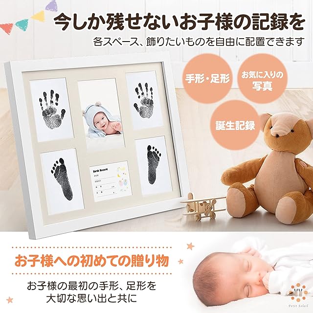 【助産師監修】Petit Soreil ベビーフォトフレーム 手形足形 出産祝い 命名書 赤ちゃん 内祝い 日本語説明書付き