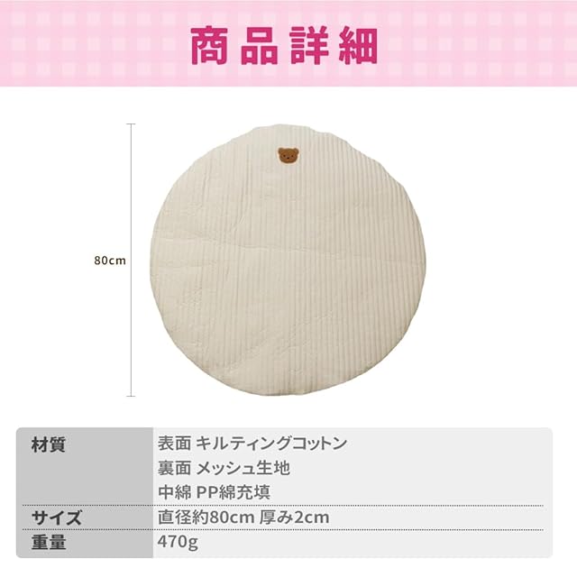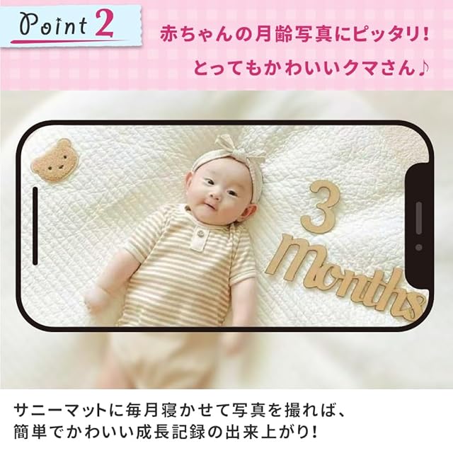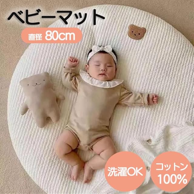 サニーマット ベビーマット プレイマット 月齢フォト 円形 赤ちゃん ベアー くま ベビー 洗える 新生児 直径80㎝