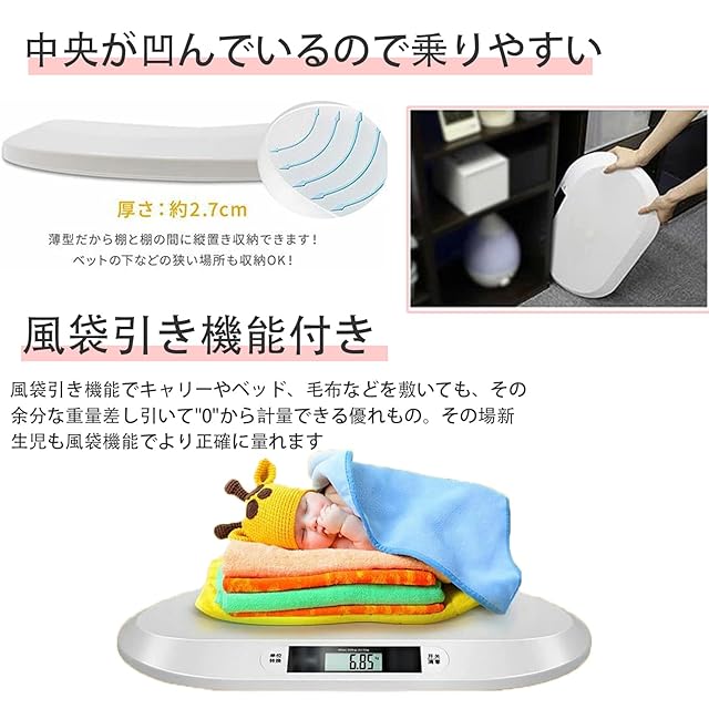 ベビースケール 【0.1kgから 最大20kg 高精度 スケール】デジタル ベビースケール 赤ちゃん 体重計 薄型軽量 単位変換 10g単位 風袋引き機能 赤ちゃん 健康管理 はかり 凹面デザイン 新生児/幼児/うさぎ/猫/犬用に適する