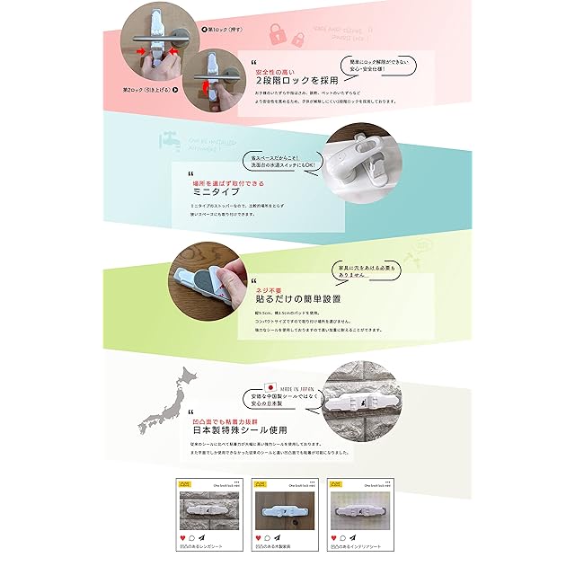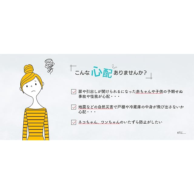 小さなお子様や赤ちゃんが扉を勝手に開けてしまい室内から外に出てしまわないようロックで防止する子供用安全対策グッズです。