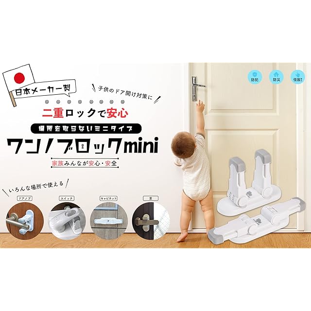 4個セット SMILELOVE ワンノブロック mini 2重ロックで安心 子供のドア開け対策に 後付けドアノブストッパー
