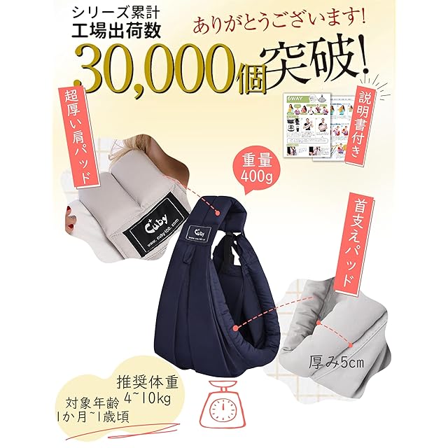 CUBY新生児 抱っこ紐 首すわり前 ベビースリング 横抱きだっこひも ベビーキャリア 赤ちゃん首座り前 スリング 人気おんぶひも 収納袋付き 新生児から使える 0~2歳 説明書あり (ダークブルー)