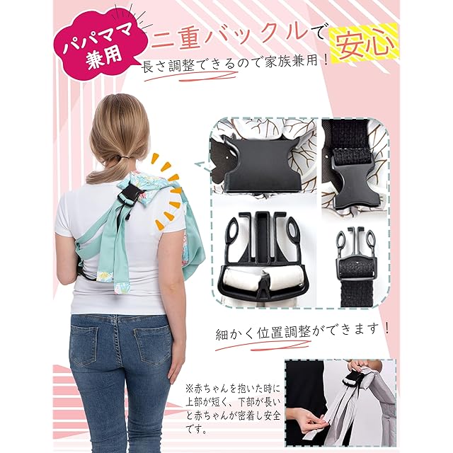 【調整可能 全身守り】ママとパパも身丈に合わせて斜め掛けだっこ紐の長さを調節できます。弊社の抱っこひもは柔らかくて適度な弾性を持つコットン素材の生地で、赤ちゃん全身をしっかりと優しく包み込み、首を引っ張らない。