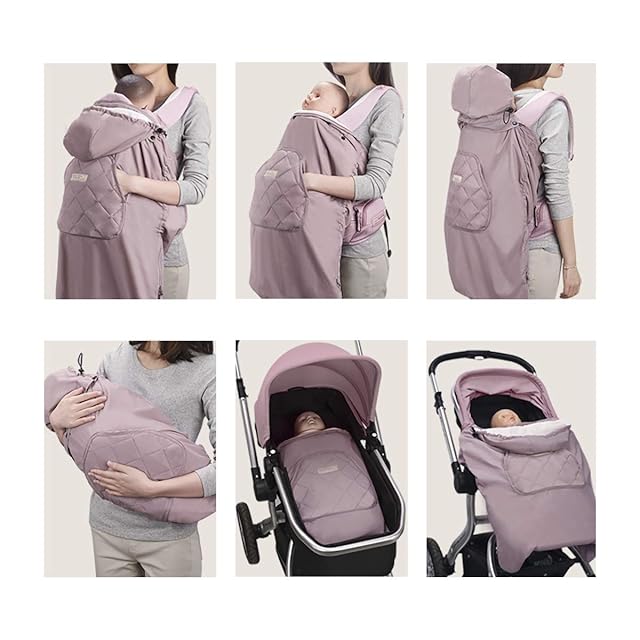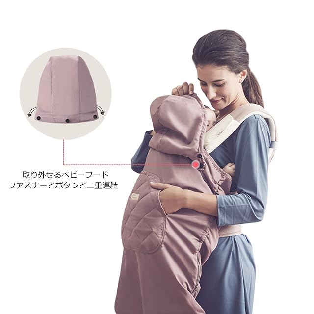 【ほかのデザイン】●ベビーフードはファスナーとボタンと二重システムを採用して、取り外せます。また、フードの端にゴム紐が付いて、赤ちゃんのサイズに合わせて調整できます。●足元ところに開閉ファスナーが設計して、赤ちゃんが大きくなっても十分なスペースを提供して、通気性もよくなります。●落下防止のために、ケープに2つの固定バックルが設計します。