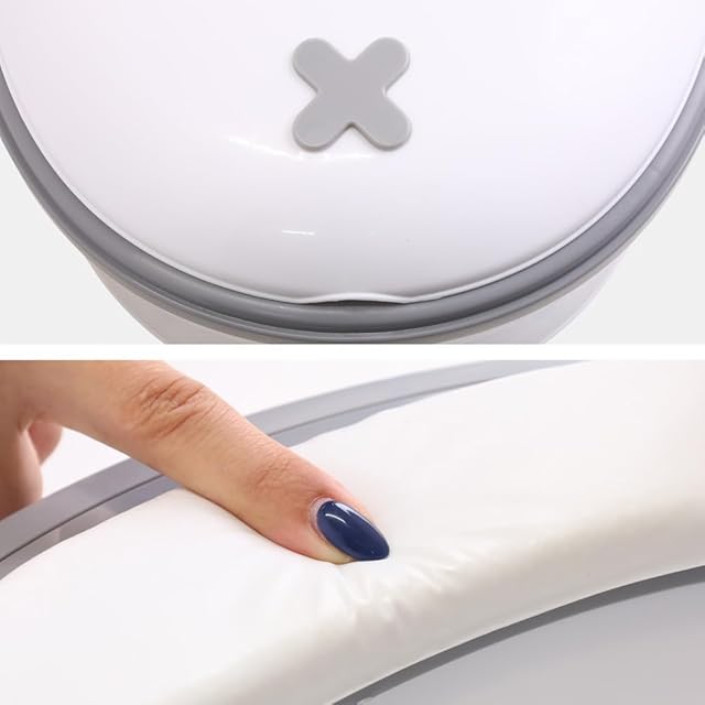 サイズ(約)幅29.5×奥行40.5×高さ49.5cm(約)(フタを開けたとき)・幅29.5×奥行40.5×高さ34.5cm(約)(フタを閉じたとき)、重量(約)1kg、材質:本体/PP・クッション部分/PVC、対象年齢:0~8歳、耐荷重(約)30kg、付属品:テープ×4・お掃除ブラシ×1