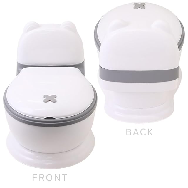 可愛らしいクマ型デザインの洋式おまるです。おまるは床に足を付けて用を足せるため、姿勢が安定し力を入れやすいのが特長です。お子さまが安心してスムーズにトイレのトレーニングを進めるために、補助便座の前におまるを準備してあげるのがおすすめです。