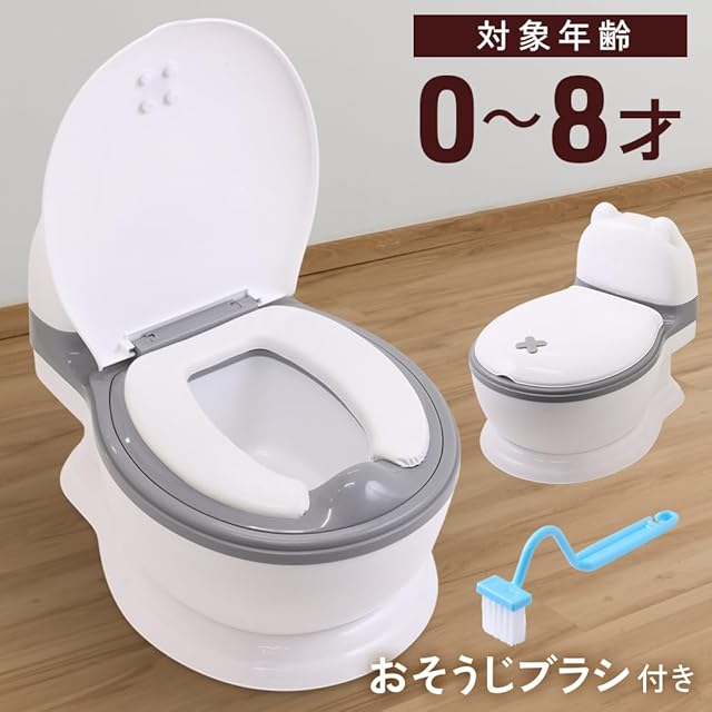 SUGGEST 子供用 おまる 洋式 くま トイレ トレーニング お掃除ブラシ付 便座 滑り止め付き 軽量 ベビー キッズ 座面クッション 練習