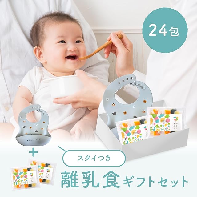 [ひよりの和ごはん] 出産祝い離乳食セット(ギフトカードタイプ)月齢に合わせた離乳食セットをお届けします (離乳食24包+スタイ)