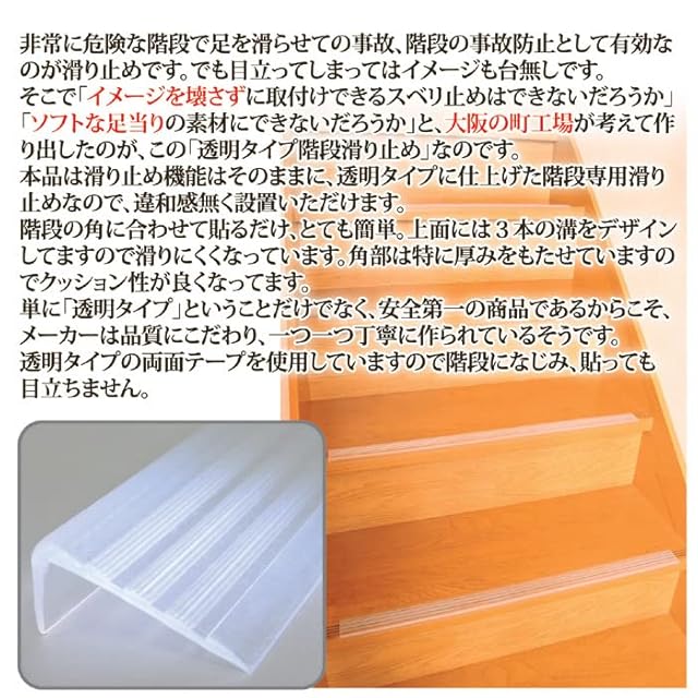 【日本製】ソーゴ 透明階段滑り止め 14本入