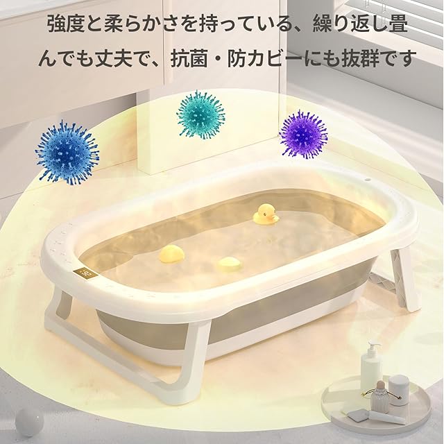 「安全・高品質な素材」:こちらのベビーバスは赤ちゃんの肌に優しい高品質のTPEとPP素材を採用しております。安全性、耐温性、耐腐食性などに優れています。無毒無害だけでなく、何度折りたたんでも破損しません。