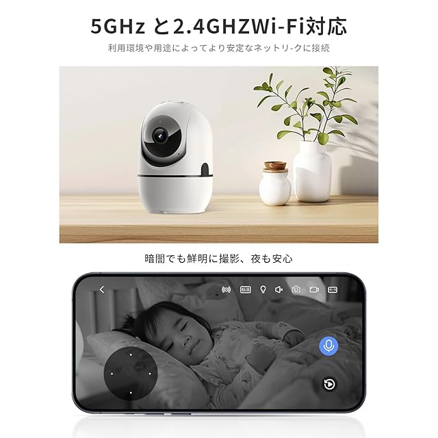 【5G/2.4GHzWiFi・赤外線暗視】ペットカメラは5G/2.4GHzデュアルWiFiで超高速・安定接続を実現します。6つの赤外線 LED ライトが搭載されている、夜になるとカメラは自動的に暗視モードに切り替わり、赤ちゃんの寝息や高齢者の動きをベビーカメラとしても確認でき、撮影可能距離は最大20mです。