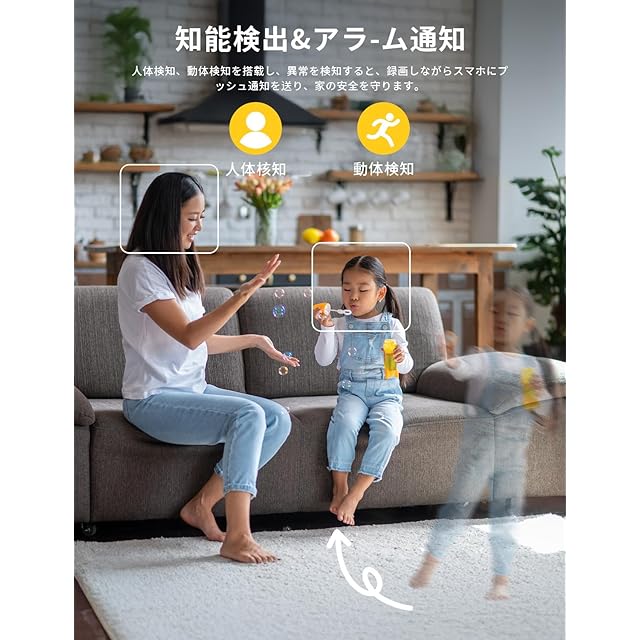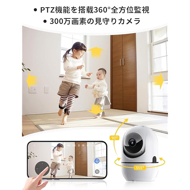 【360°自動追跡・2K】防犯カメラ 室内はAI搭載の360°自動首振り機能で、ペットの動きや室内の死角をリアルタイムにキャッチ!スマホ操作で上下左右にスムーズにカメラを制御し、110°超広角レンズが広範囲をカバーし、離れた場所でも見守りカメラとして家族の安全を24時間サポート。300万画素(2K)のCMOSセンサーを搭載します、2304×1296Pの高解像度。