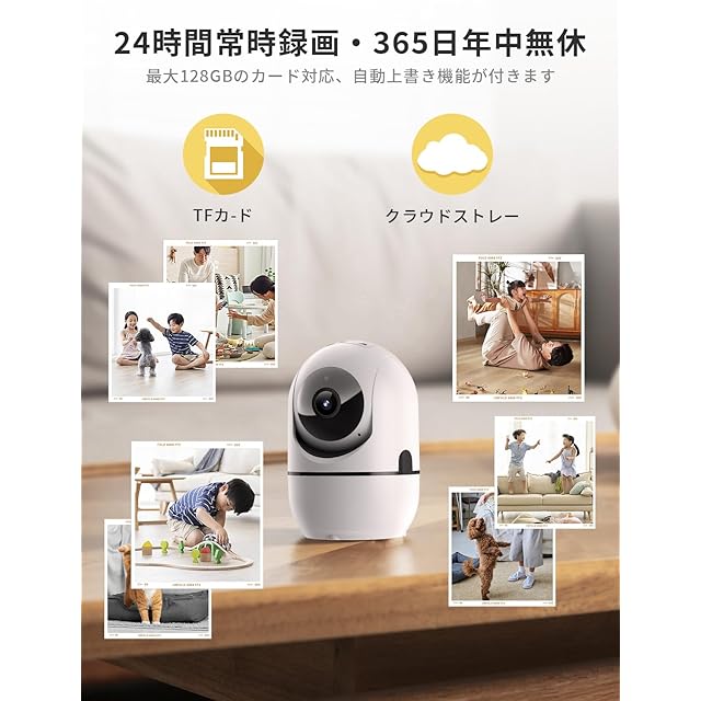 【24時間録画・自動上書き・Alexa対応】24時間常時録画・365日年中無休の室内カメラです、最大128GBのカード(別売り)と自動上書き機能に対応して、古いファイルに自動的に上書きしながら録画をするので、メモリ不足を心配する必要はありませんです。ネットワークカメラはAlexaも対応、アレクサに話しかけるだけでカメラの映像を確認できます。