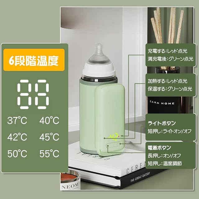 「優れた保温性」冬場の外気温が冷たい季節でも、ミルクを温めておける!冷たいままでは赤ちゃんが飲まない、本製品が肌に優しい、保温性が良かった生地で使います、6段階の温度調節できます、自分の好さ温度に続け保ちます。ミルク保温器は四季が適用です。特に冬で、ベビーは暖かいミルクを飲む必要があります。ミルクを飲み頃の42℃にキープしてくれるので、深夜の夜泣き、授乳時間でも慌てずにミルクをあげることができます