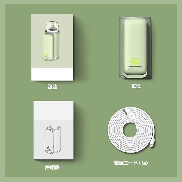 Aseech 哺乳瓶ウォーマー ミルク ボトル ウォーマー 哺乳瓶カバー 保温器 USB式 リアルタイムの温度表示 温め&保温 外出先/夜間授乳に助ける ポーチ ケース 6段階温度調節 300g軽量 6000mAh大容量 アウトドア (グリーン)