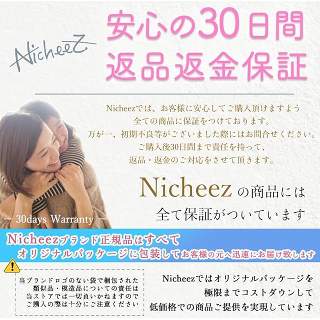 【安心の日本販売店/30日間の返金保証付】本商品は購入から30日間の返品保証付となります。Nicheezオリジナルパッケージに包装し、迅速にお客様の元へお届け致します。商標登録第6600663号