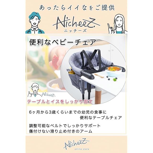 Nicheez ベビーチェア 折りたたみ テーブルチェア 携帯 ベビーシート (ブラック)
