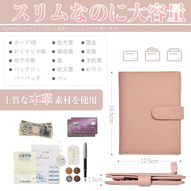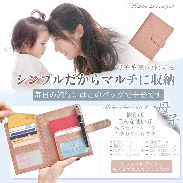 【こんな方におすすめ】 実用性が高く、シンプルで飽きのこないデザインなので、自分用だけでなく、誕生日や母の日のプレゼント、就職祝い、出産祝いなどのお祝いにもおすすめします。キャッシュカードやクレジットカードも一緒に収納できるので、財布もいらず。おしゃれで多機能な母子手帳ケースとしても使えます。 お薬手帳や母子健康手帳の収納はもちろん、様々な用途に使えるマルチケースです。 銀行通帳やキャッシュカードを分けて収納しておけば、銀行へ持っていく際もサッと取り出せます。旅行先ではパスポートケース、年金手帳なども収納できます。