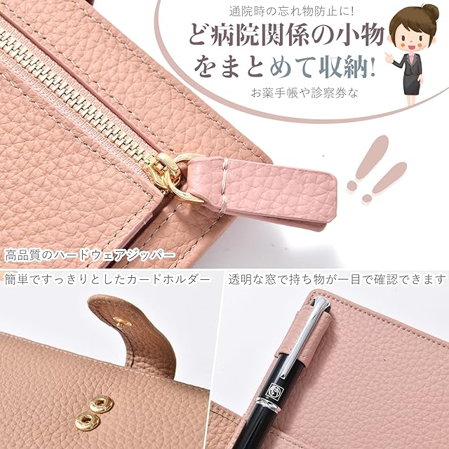 【マルチケース収納 】- 診察券と保険証などカード8枚、お薬手帳1冊: パスポート、ペット手帳、通帳などの手帳を収納できます。 領収書、処方箋、お札、小銭、病院の予約票やカルテも折りたためば簡単に収納できます。 使いやすく、大容量で実用性が高い!